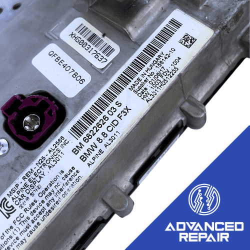 One of the most common failures with the BM 6822626 BMW 8.8 CID F3X is that the display can get cracked or damaged with lines going through it, or circular blobs can appear over time. Sometimes it can fail and go completely blank. We replace the entire display assembly with a genuine part.